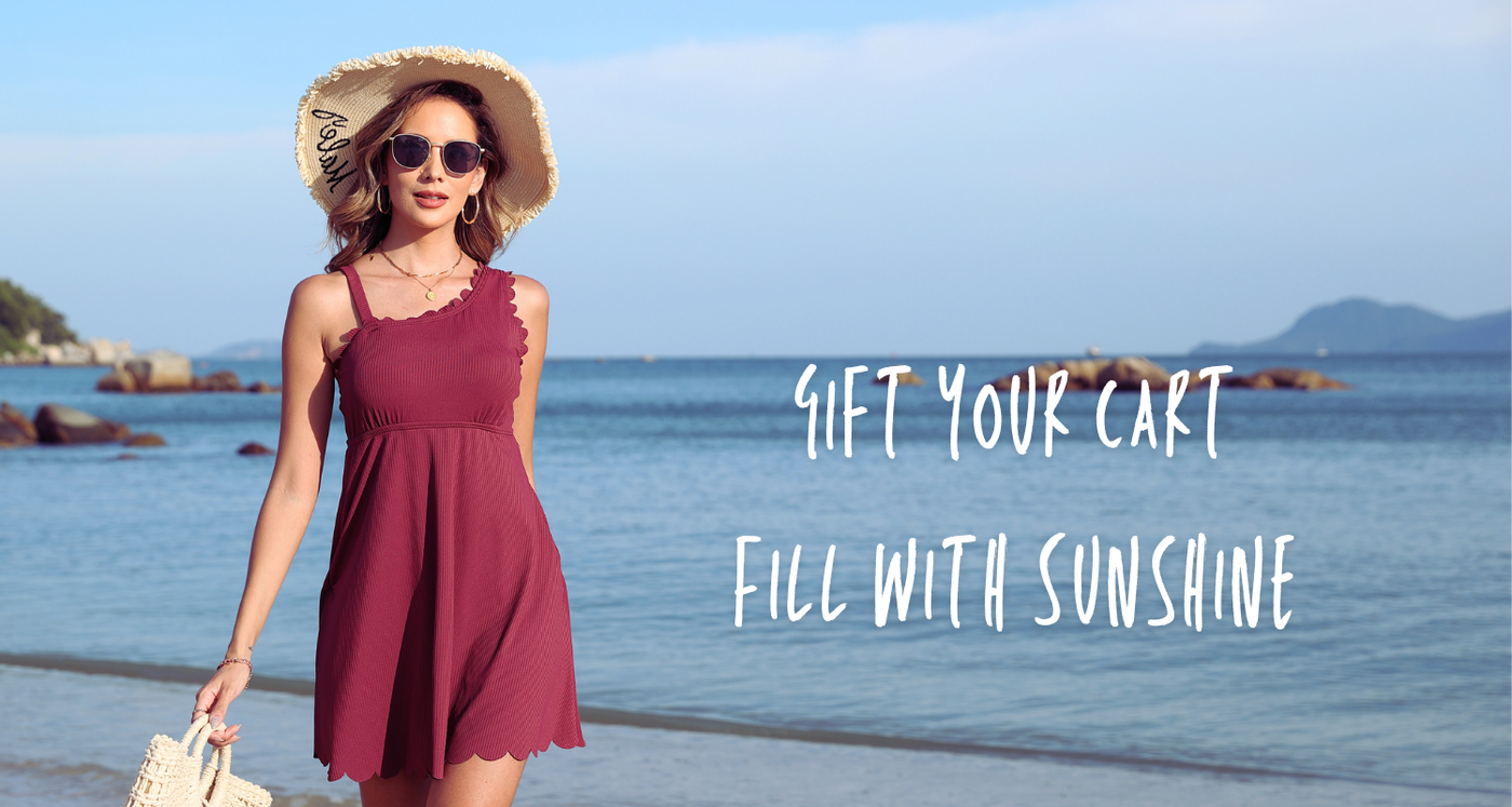 Women's Tummy Control Swimdress Ribbed Scalloped Swimsuits for Women Built-in Side Tie and Briefs