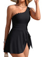 Asoul Scalloped One Shoulder One Piece Swimsuit Womens Tummy Control Bathing Suit with Skirt Tie Knot Cute Swimwear