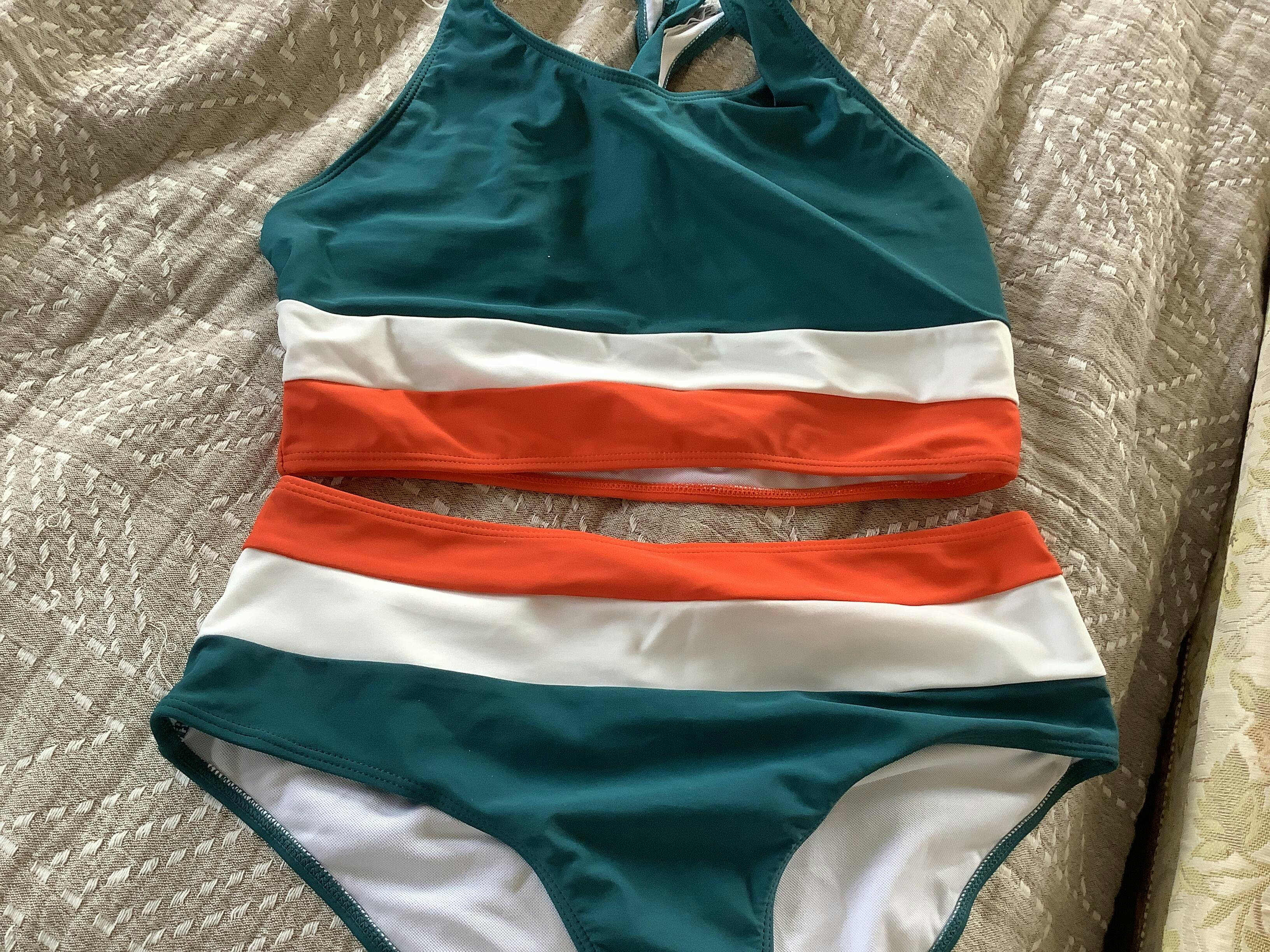 Color Block U Neck Cut Out Wide Strap Bikini Suits - S is backordered and will ship as soon as it is back in stock.
