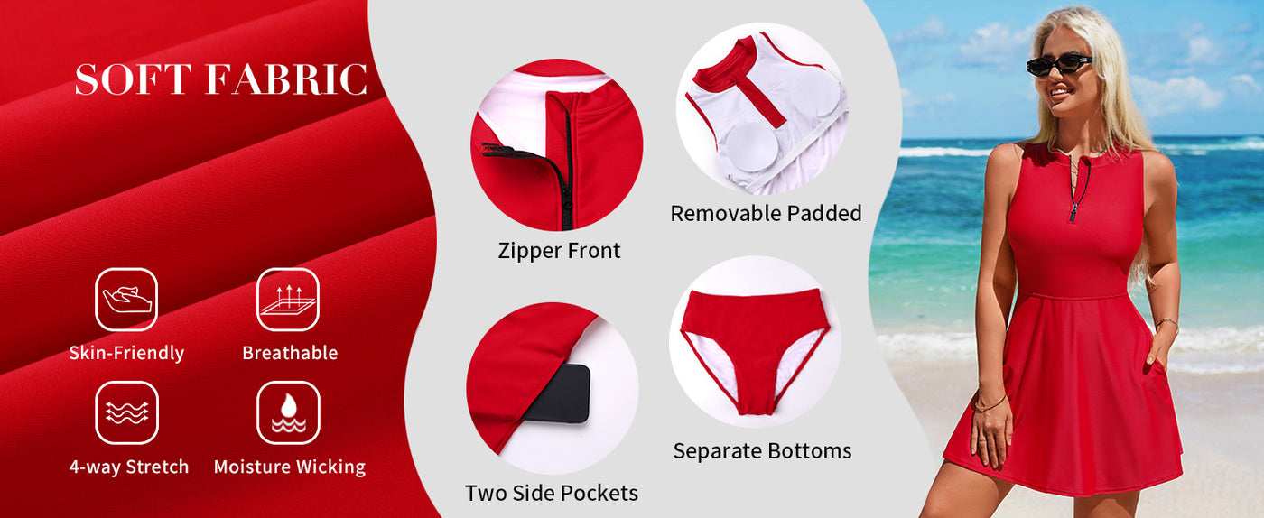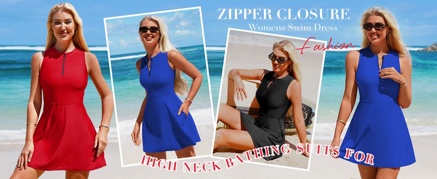 This flattering swim dress for women features an A-line design with a high waistband that accentuates your curves, creating a perfect silhouette. The zipper closure allows for easy wear, while the built-in padded bra provides excellent support, showcasing your figure beautifully.