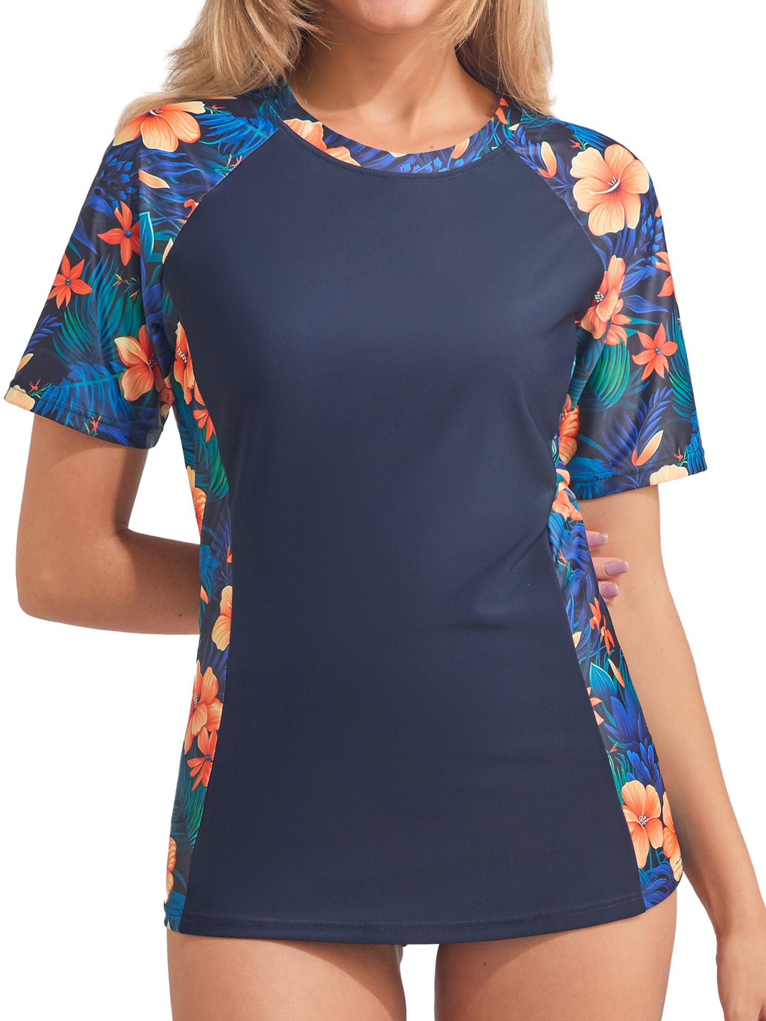 Sociala Women's Printed Active Rash Guard UPF 50+ Sun Protection Swimsuit Bathing Suit Tops Workout Running Tops Shirts