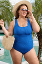 U Neck Wide Strap Scalloped Modest Plus One Piece Swimsuit